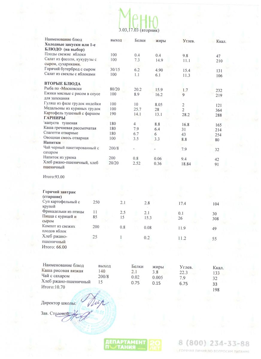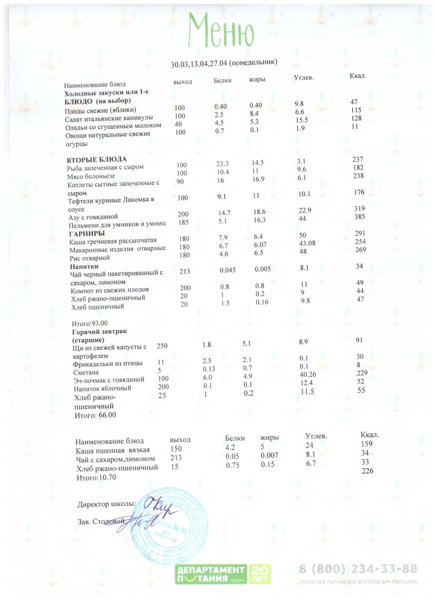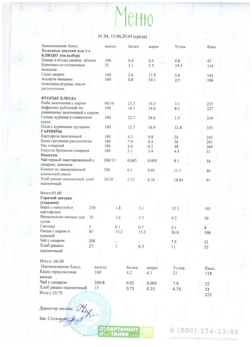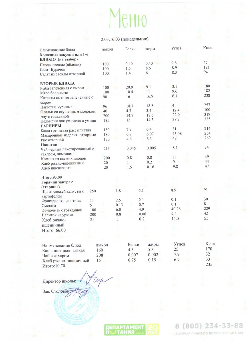 Меню 5 - 11 классы