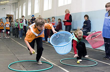 Сегодня в спортивном зале нашей школы прошли эстафеты среди учащихся начальной школы "Богатырская наша сила".