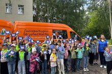 После завтрака к нам в гости прибыл автобус под названием "Лаборатория безопасности". Ребята вспомнили правила дорожного движения. Выполняли различные задания с целью предотвратить и снизить число аварий, а также сформировать культуру поведения на дорогах (собирали пазлы, ездили на велосипедах с препятствиями, рисовали знаки дорожного движения). Мероприятие проводили ГБУ "Дорожное движение".