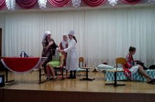 Учащиеся нашей школы приняли участие в районном конкурсе школьных театров. Они показали спектакль Туфана Миннулина «Әниләр Һәм бәбиләр» .