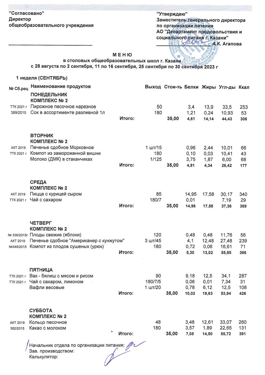 Меню с 1 сентябня по 2 сентября, с11-16 и 25 по 30 сентября