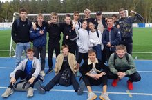 Сегодня команда юношей и девушек нашей гимназии участвовала в районном легкоатлетическом кроссе на стадионе "Локомотив".