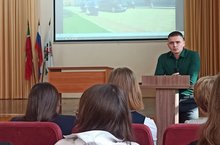 Сегодня в целях реализации профминимума в гимназии состоялась встреча с выпускником Академии Федеральной службы охраны, лейтенантом, Виталием Петровичем Медведевым. В рамках встречи обсудили условия поступления в этот вуз, преимущества службы, возможное дальнейшее развитие карьеры.