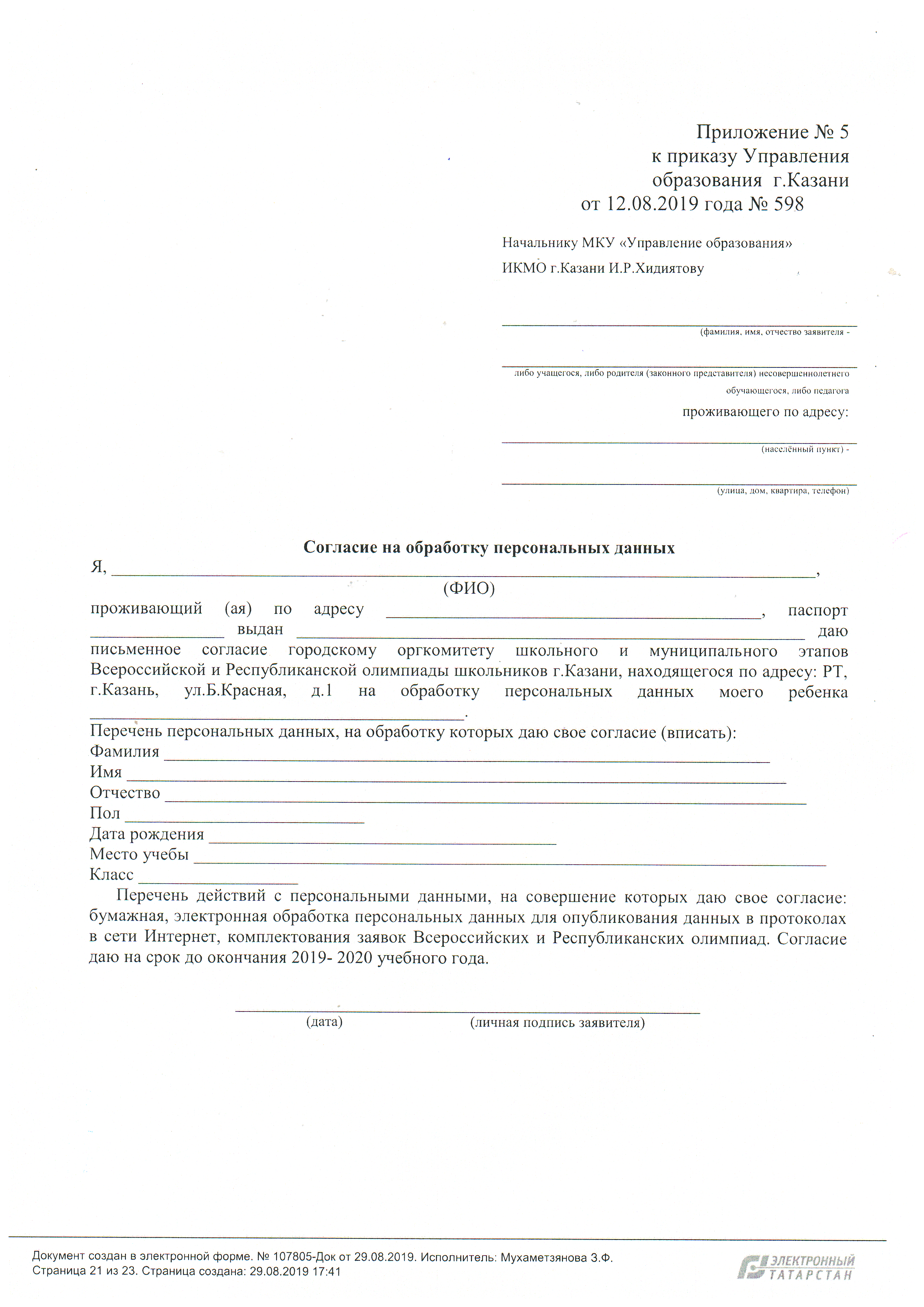 Приложение к приказу Управления образования ИКМО г.Казани № 812/02-05-02