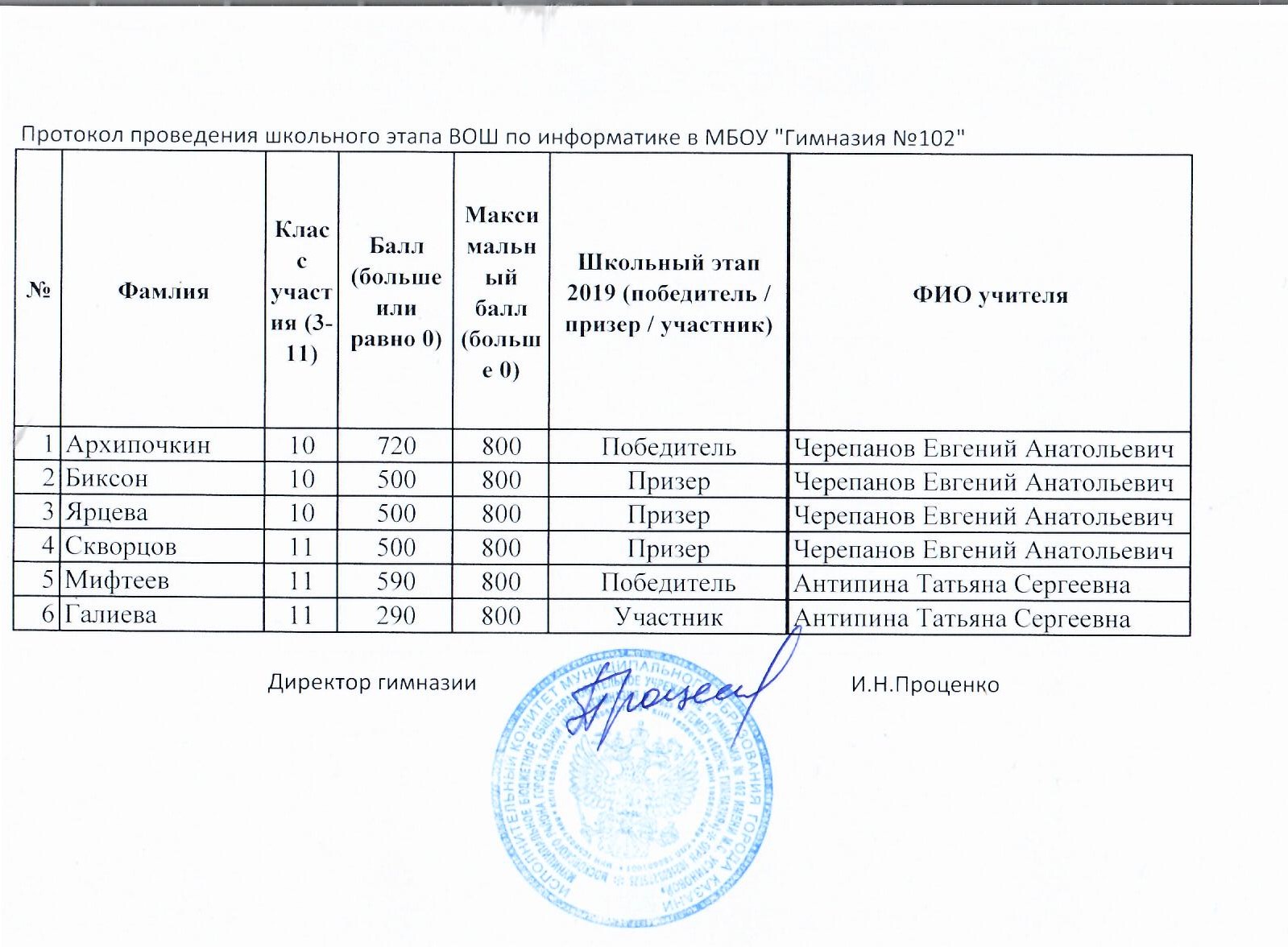 Протоколы школьного этапа
