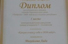 Сегодня в здании Госуддарственного Совета РТ подвели итоги Республиканского конкурса творческих работ среди школьников в рамках парламенского урока 2017 года "Стратегия - 2030: мой вклад в будущее республики". От всей души поздравляем Михайлову Аиду, ученицу 4а класса с победой в номинации "Детский рисунок" - "Каким я вижу себя в 2030 году".