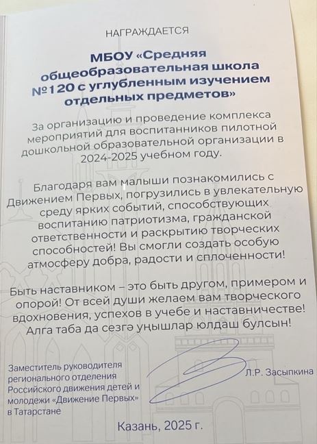 Муниципальное бюджетное общеобразовательное учреждение «Средняя общеобразовательная школа №120 с углубленным изучением отдельных предметов» Московского района г. Казани