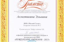 Гимназиябезнең 7А сыйныфы укучысы Эльвина Әхмәтшина район күләмендә уздырылган "Поколение лидеров - 2015" бәйгесендә III урынны яулады. Афәрин!