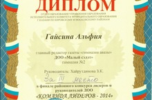 Район күләмендә уздырылган "Команда лидеров - 2014" конкурсында III урынны яулаган 9Б сыйныфы укучысы Әлфия Гайсинаны котлыйбыз һәм уңышлар телибез!