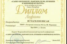 XIV Всероссийская юношеская научная конференция "Санкт-Петербург, Царское Село. Пушкин и мировая культура" 26.10.2012