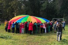 Спортивные праздники дают детям радостные переживания, запоминаются им надолго. К таким мероприятиям необходимо готовиться особенно тщательно, продумывая каждый момент. Праздничное настроение во время развлечения создается, если инвентарь для игр и упражнения усвоены детьми заранее. Главный тренер проекта И.Е. Бурый организовал работу детских команд с адаптивным инвентарем таким образом, что они играли, не мешая друг другу, но с азартом и духом соперничества. Ведь основной целью любого спортивного мероприятия является пропаганда физической культуры, здорового образа жизни, совершенствование движений, воспитание таких черт характера как коллективизм, дисциплинированность, уважительное отношение к соперникам. Поэтому финальным этапом праздника в каждой школе стали игры с парашютом, потому что цель и задачи при игре с парашютом это-развитие командного взаимодействия и внимания , улучшение эмоционального состояния.