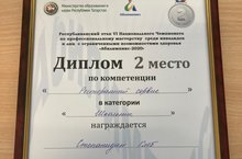 Ученик 7 класса, Степанидин Г. занял 2 место в Республиканском этапе IV Национального Чемпионата по профессиональному мастерству среди инвалидов и лиц с ограниченными возможностями здоровья "Абилимпикс-2020" по компетенции "Ресторанный сервис"