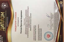 Ученик 4В класса Попков Я. награжден дипломом 1 степени за выполненную и представленную конкурсную работу в общей номинации: "Декоративно-прикладное творчество"