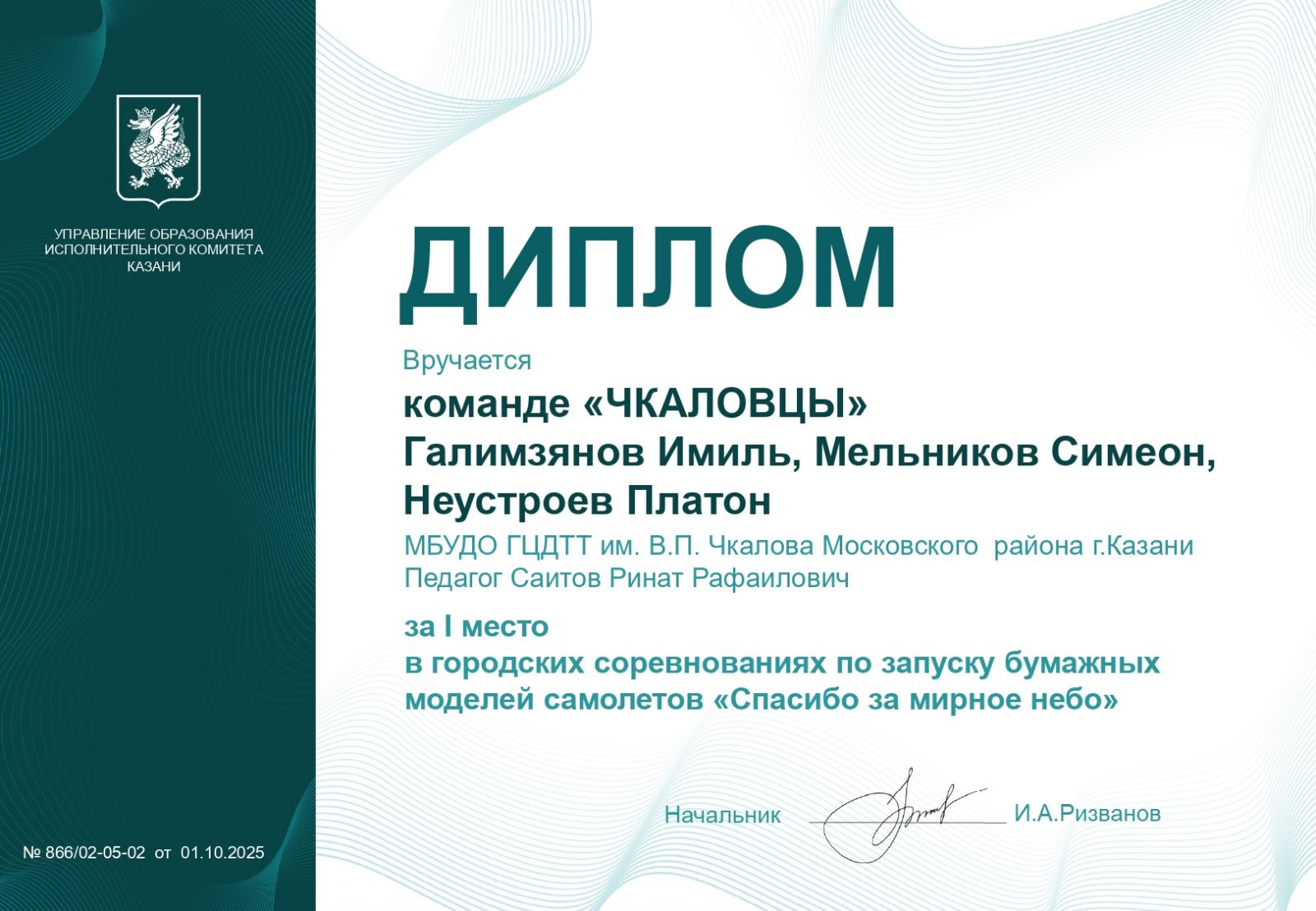 Муниципальное бюджетное учреждение дополнительного образования «Городской центр детского технического творчества им. В.П.Чкалова» г. Казани - новости