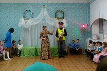 В нашем центра расположен стенд по безопасности дородного движения.