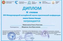 Поздравляем призёра XXII Международной молодежной научно - практической конференции имени Каюма Насыри.