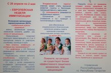 По инициативе Всемирной организации здравоохранения в Европе, в том числе в Российской Федерации и Республике Татарстан в период с 26 апреля по 2 мая 2021 года проводится Европейская неделя иммунизации (далее ЕНИ - 2021). Основная цель ЕНИ -2021 - повышение уровня знаний населения о важности иммунизации в предупреждении инфекциооных заболеваний.