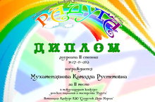 Поздравляем учащихся педагога дополнительного образования Шадриной О.В. с призовыми местами в международном конкурсе детских талантов и мастеров "РАДУГА" в номинации конкурс ИЗО "Сундучок Деда Мороза". Мухаметзянова Камилла - лауреат II степени, Горбунова Валерия - лауреат II степени, Пискарева Вероника - лауреат II степени. Поздравляем педагога и учащихся с заслуженной победой и желаем новых высот!