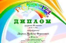 Продолжаем побеждать в Международных конкурсах 24.01.2020 Поздравляем Долгих Алексея, занявшего 3 место в Международнем конкурсе детских талантов и мастерства "Радуга" под руководством педагога дополнительного образования Шадриной Ольги Валерьевны.