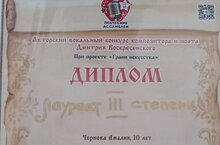 Поздравляем Чернову Амалию, учащуюся объединения "Звуки радуги" (педагог Мухутдинова А.С.), Лауреата III степени конкурса казанских международных певческих ассамблей Дмитрия Воскресенского при проекте «Грани искусства».