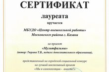 Подведены результаты городского конкурса на лучший инклюзивный проект "Мы в самоизоляции вместе!". Наш проект "Мультфильмы" получил сертификат лауреата! Поздравляем!