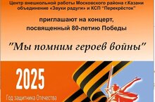 "Центр внешкольной работы", объединения "Звуки радуги" и КСП "Перекресток" приглашают всех желающих на концерт, посвященый 80-летию Победы "Мы помним героев войны".