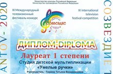 Студия "Умелые ручки" участвовали на XI Международном телевизионном фестиваль-конкурсе "Созвездие талантов-2020". Они представили два мультфильма: "Приключения кота Барбариса" и "Имиля-сладкоежка". Обе работы получили диплом лауреата, поздравляем ребят и педагога Тюрину Татьяну Вениаминовну!