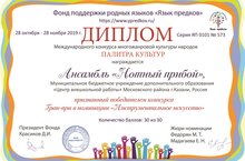 Гран-при завоевал ансамбль "Нотный прибой" в международном конкурсе многожанровой культуры народов "Палитра культур" в номинации "Инструментальное искусство". Поздравляем ансамбль "Нотный прибой" и педагога Кибардину Наталью Михайловну!