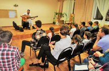 12 октября для детей, занимающихся в объединениях "Струнные инструменты" и ансамбль "Нотный прибой", а также для родителей обучающихся состоялся мастер-класс музыканта гитариста Эдуарда Андреевича Дементьева. На мастер-классе Эдуард Андреевич раскрыл некоторые секреты гитарного исполнительства и ознакомил детей и родителей с возможностями профориентации музыканта.