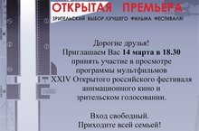 Просмотр программы мультфильмов XXIV Открытого российского фестиваля анимационного кино и зрительское голосование 09.03.2019