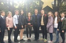 Активисты клуба "Лидер" на съемках видеоролика для участия в акции "Строки Победы", которую запустили активисты ДОО "Дети в Казани"