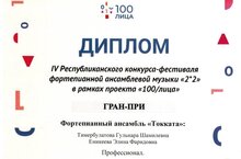 23 марта 2025г. состоялся IV Республиканский конкурс –фестиваль фортепианной ансамблевой музыки 2*2 в рамках проекта «100/лица».Фортепианный ансамбль «Токката», в составе преподавателей Тимербулатовой Г.Ш. и Еникеевой Э.Ф., продемонстрировал высочайшее мастерство и творческое единение, что и было по достоинству оценено жюри, присудившим "Токкате" ГРАН-ПРИ!Также прекрасный дуэт Миниахметовой Шамсии и Еникеевой Э.Ф. завоевал Лауреат 2 степени!Поздравляем!Гордимся! -