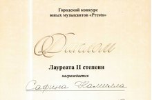 Учащася нашей школы Сафина Камилла стала Лауреатом II степени.