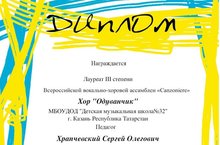 Поздравляем хор "Одуванчик" со званием Лауреата 3 степени Всероссийской вокально-хоровой ассамблеи "Canzoniere". Преподаватель Отличник народного просвещения Храпчевский Сергей Олегович, концертмейстер Биктимерова Алсу Исмаиловна.