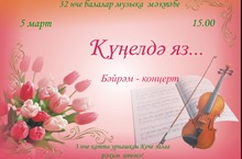 Сегодня (5 марта 2014 года) в нашей школе (на базе Гимназии №2) состоялся праздничный концерт посвящённый 8 Марта "Күңелдә яз..." ("В душе весна..."). В концерте было 15 номеров, в том числе вокально-инструментальный ансамбль преподавателей школы с песней Л.Батыркаевой "Письмо мамы".