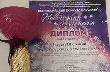 Дуэт Фазыловы Разиля и Ризаля 24 декабря 2023 года приняли участие Во Всероссийском конкурсе искусств «Новогодняя планета» и стали Лауреатами 3 степени.Благодарственными письмами конкурса были награждены преподаватель Радайкина Э. Р. и концертмейстер Сидоркин В.Ю.Поздравляем! Желаем новых творческих успехов и побед!