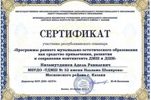23 января 2023 года в «Центре социально-гуманитарного образования» преподаватель Низамутдинов Адель Равилевич стал участником республиканского семинара «Программы раннего музыкально-эстетического образования как средство привлечения, развития и сохранения контингента ДМШ и ДШИ. -