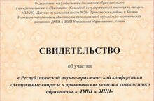 Преподаватели нашей школы Мансурова Н.А., Салахова Р.И., Хакимова Л.А., Ирбулатова Л.К., Сафина Г.Р., Багаутдинова З.А., Халитова И.Р. приняли участие в Республиканской научно – практической конференции «Актуальные вопросы и практические решения современного образования в ДМШ и ДШИ». Каждый педагог поделился своим педагогическим опытом и выступил с методической работой. По окончанию конференции участники получили Свидетельство. -