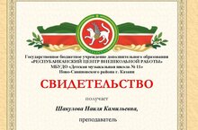 23 января 2022 года преподаватель нашей школы Радайкина Эльвира Рауфовна приняла участие в городском методическом объединении струнно-смычковых инструментов ДМШ и ДШИ г. Казани. Эльвира Рауфовна выступила с докладом по теме: «О различных системах деления грифа на скрипке». Эльвира Рауфовна была награждена Благодарственным письмо за выступление на высоком профессиональном уровне и большой личный вклад в развитие культуры и искусства г. Казани.