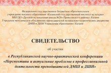 В декабре 2021 года на базе ДМШ № 20 проходила Республиканская научно-практическая конференция «Перспективы и актуальные проблемы в профессиональной деятельности преподавателей ДМШ и ДШИ». Преподаватели нашей школы Шакулова Н.К., Гараева И.Р., Сафина Г.Р., Хакимова Р.Р., Гайнуллин А.Р., Шакирова Т.В., Салахова Р.И., Мансурова Н.А., Багаутдинова З.А., Муззафарова Р.Г., Радайкина Э.Р., Ирбулатова Л.К. выступили с докладами, где поделились педагогическим опытом с коллегами. По завершению конференции всем педагогам выдали Свидетельство об участии.