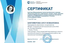 27 мая 2021 года состоялась Всероссийская педагогическая конференции «Здоровьесберегающие технологии в современном образовании», в которой преподаватель Кавайкина Рушания Анасовна приняла участие с публикацией «Здоровьесберегающие технологии на уроках вокала в детской музыкальной школе» и стала Победителем 1 степени.
