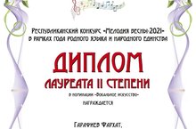 В Елабуге состоялся Республиканский конкурс «Мелодия весны-2021» в рамках Года родного языка и народного единства, в котором учащиеся нашей школы приняли участие и заняли призовые места: