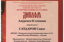 В Зеленодольске прошел VI Открытый всероссийский конкурс-фестиваль «Волжские напевы балалайки», в котором учащийся нашей школы Сатдаров Самат, преп. Низамутдинов Адель Равилевич, стал Лауреатом 2 степени.