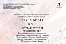 Мухаметшин Мурат, учащийся класса преподавателя Низамутдинова А.Р., стал победителем, Лауреатом 1 степени, в Международном конкурсе инструментального, вокального, хореографического и театрального искусства «Sforzando»!