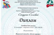 В марте в Казани прошел VIII Международный конкурс вокалистов Народной артистки РФ и РТ, Лауреата Государственной премии РТ имени Г.Тукая профессора Винеры Ганеевой «Сандугач-Соловей», в котором Вокальный ансамбль «Бәхет нурлары», рук. Кавайкина Р.А., стал Лауреатом 3 степени.