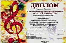 14 марта 2021 года прошел VI Республиканский фестиваль-конкурс «Золотой камертон» Учебно-методические работы. Преподаватели нашей школы приняли в нем активное участие и заняли призовые места: