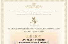 13 марта 2021 года прошел III Международный конкурс вокалистов и чтецов «Голос Татарстана», в котором Вокальный ансамбль «Тамчы», преп. Кавайкина Р.А., Мингазетдинова З.А., стал Лауреатом 2 степени.