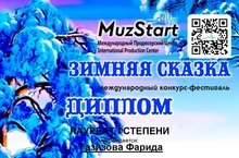 В Международном конкурсе-фестивале «Зимняя сказка» ученица нашей школы Газизова Фарида, преподаватель Хакимова Л.А., стала Лауреатом 1 степени!