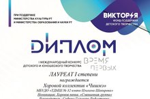 Хоровой коллектив «Чишмә», рук. Сафина Г.Р., стал Лауреатом 1 степени.