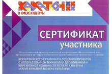 Сафина Гульнара Рафгатовна приняла участие во Всероссийской научно-практической конференции "Многогранный мир традиционной культуры и народного художественного творчества" в рамках Всероссийского хакатона по созданию проектов с использованием технологий дополненной и виртуальной реальности в сфере культуры «AR/VR хакатона в сфере культуры в городе Казани, награждена Сертификатом.